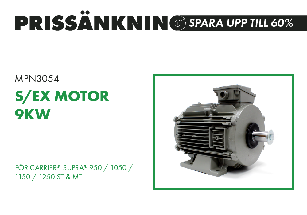 Myriad utbytes-elmotor utvecklad för Carrier® Supra® 950–1250-applikationer, som bidrar till lägre underhållskostnader utan att kompromissa med passform, funktion eller driftsäkerhet.
