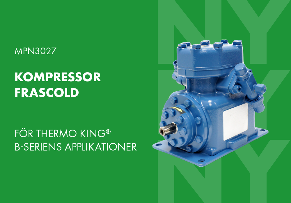 Myriad-kompressor utvecklad för att passa Thermo King® B-Series-system, direkt ersättning för OEM 102-0891, och levererar pålitlig samt effektiv kylprestanda.